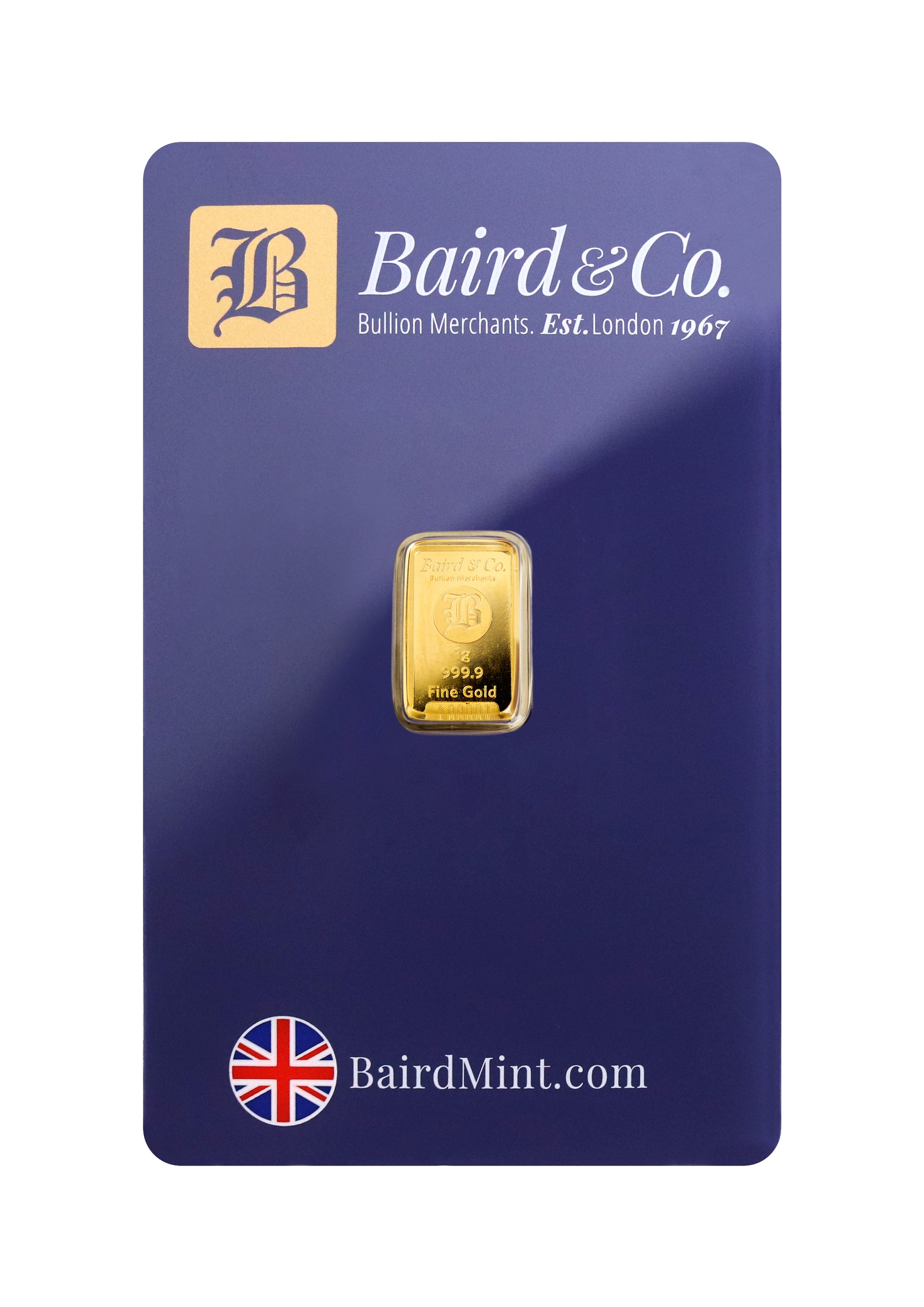 The Baird & Co. 1g gold minted bar is produced at our internationally recognised London refinery. This bar is produced to the internationally recognised 999.9 standard and carries the Baird & Co. mark, the weight and fineness. Bars are supplied in sealed, tamper resistant packaging.