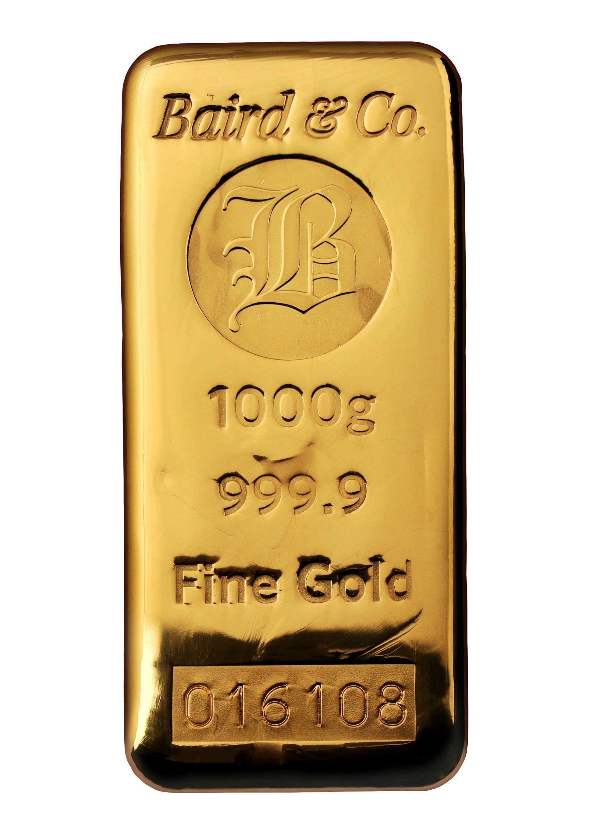 The Baird & Co. 1kg gold cast bar is produced at our internationally recognised London refinery. This bar is produced to the internationally recognised 999.9 standard and carries the Baird & Co. mark, the weight, fineness and a unique serial number.